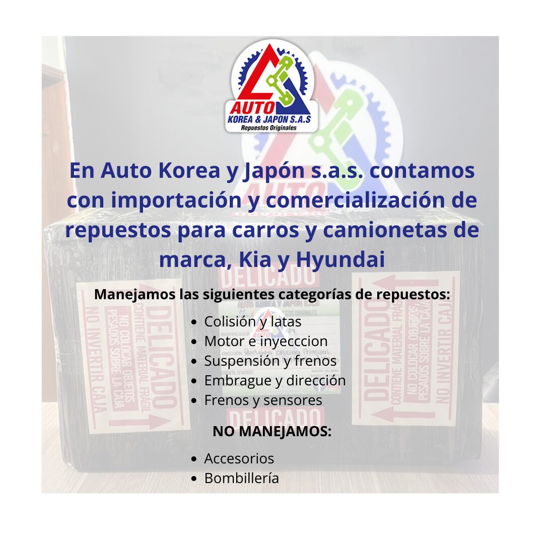 Auto Korea y Japón, líder en repuestos originales para Hyundai y Kia, destaca por la calidad y confiabilidad de cada componente. Nos comprometemos a brindar respaldo total a nuestros clientes. Ofrecemos envíos contra entrega en Bogotá y envíos a nivel nacional para una experiencia de compra conveniente y segura.